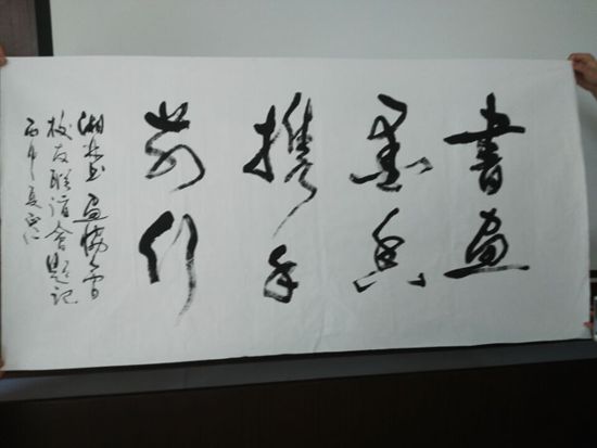 聚会期间,校友们畅所欲言,畅谈母校生活,感恩母校,感怀书画活动对自身成长的影响。曹诗耘、肖正仁、张晓武等指导老师与校友会员们举行了现场笔会,所创作的书画作品全部捐赠母校及树人书法协会。