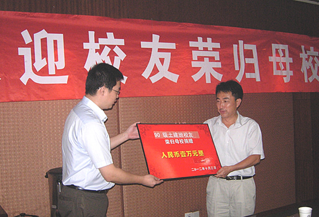 十月三号下午,90级土建班校友回到母校举行毕业二十周年的座谈会。在行政楼四楼会议室召开了师生座谈会,学校副校长曹福祥对各位校友的到来表示热烈的欢迎。土木工程与力学学院院长陈伯望,书记刘梦飞等人出席了座谈会。会议始终在轻松、愉快和温馨的气氛中进行,大家一同热烈探讨了母校近年来的发展,及校友各自走向工作岗位后的社会历程。领导老师为校友所取得的骄人成绩倍感欣慰,校友亦表达了对母校的诚挚祝福。会后,进行了校友对母校爱心的捐赠仪式,并合影念。