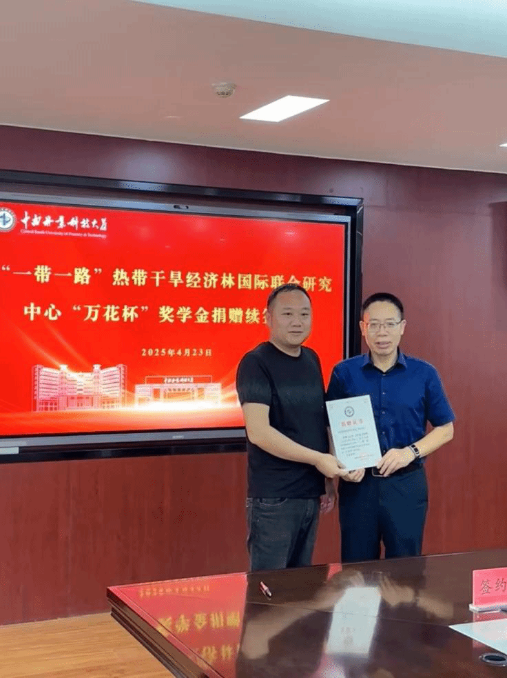 “一带一路”热带干旱经济林国际联合研究中心“万花杯”奖学金捐赠续签仪式顺利举行