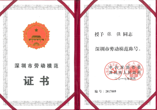 张强:深圳市“五一劳动奖章”获得者、深圳市劳动模范